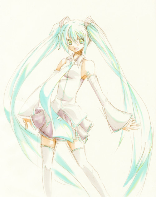 シャーペンと数少ないコピックでぐりぐり描いたミク。